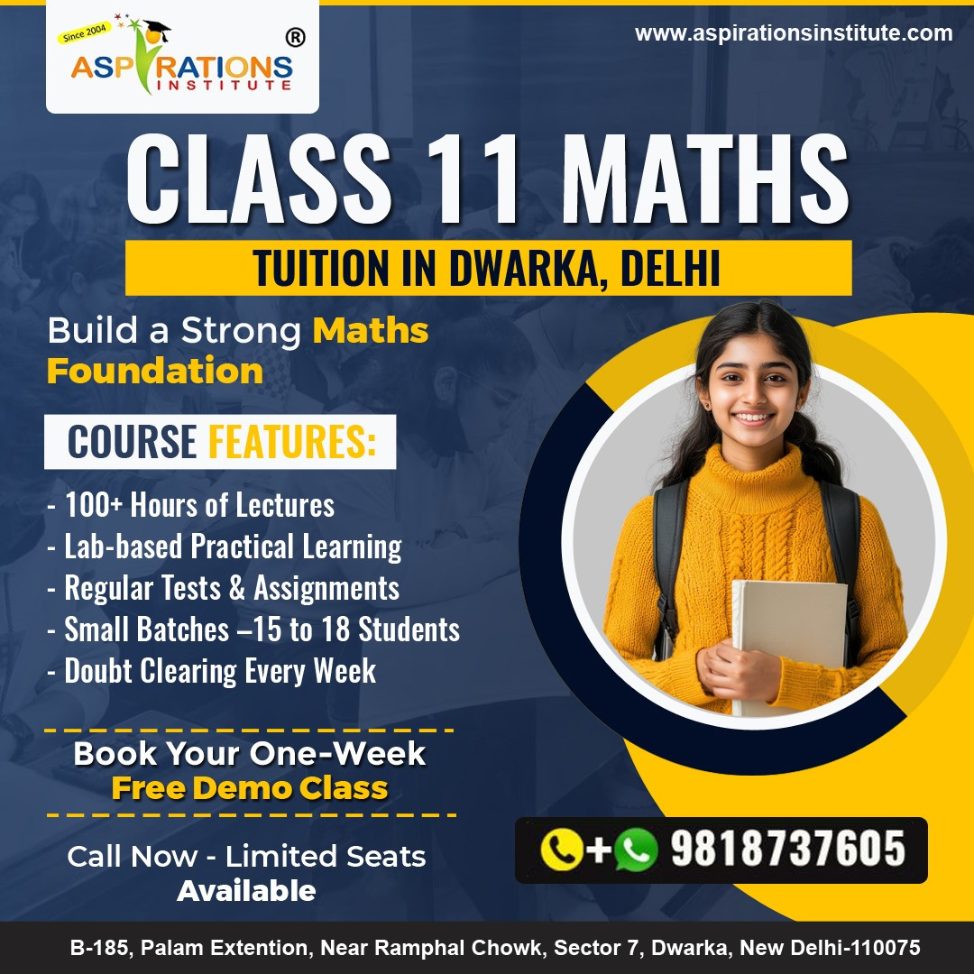 If you’re in Delhi Dwarka or nearby areas like Palam, Janakpuri, or Uttam Nagar, you don’t need to struggle alone. Aspirations Institute – CBSE Coaching Classes in Delhi Dwarka Sector 7, near Ramphal Chowk – has been helping Class 11 students master Maths for 21+ years. With small batches, expert teachers, regular tests, and NCERT + competitive prep, this program ensures concept clarity, exam confidence, and consistent improvement.